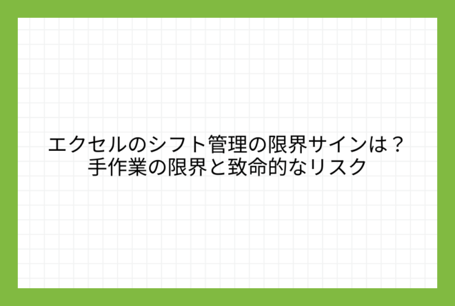 この記事では、シフト作成管理者の職場で「Excel管理が限界に達している」ことを示す具体的なサインを確認し、手作業の限界を超えたときに発生する致命的なリスクと、その解決策をお伝えします。